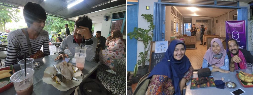 Nowadays Coffee tampak ramai Selasa sore 6 Oktober 2020 itu. Coffee shop yang berlokasi di Jalan Muhammad Hambal Pontianak tersebut tampak bersolek. Kursi disusun, meja dibagi ke dalam beberapa lingkaran, Nasi Tumpeng, aneka cemilan dan Es Kopyor nampak ditata sedemikian rupa di ruang samping Nowadays. Kesibukan demikian terasa, pasalnya karena pada hari itu Studio Podcast Siberdaya akan resmi dibuka.