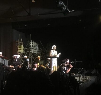 Acara berlangsung meriah, dibuka oleh permainan apik dari band Merah Jingga, tiupan suling tradisional saling susul-menyusul dengan distorsi gitar listrik dan vokal lantang yang menjadi tandem denting maskulin Sape’, stakato cepat, namun juga sesekali terdengar feminin dan melantun lembut. Tiga lagu dibawakan band lokal Kalimantan Barat yang diidolai ini. Memanaskan penonton agar lebih siap menyaksikan sesi utama.