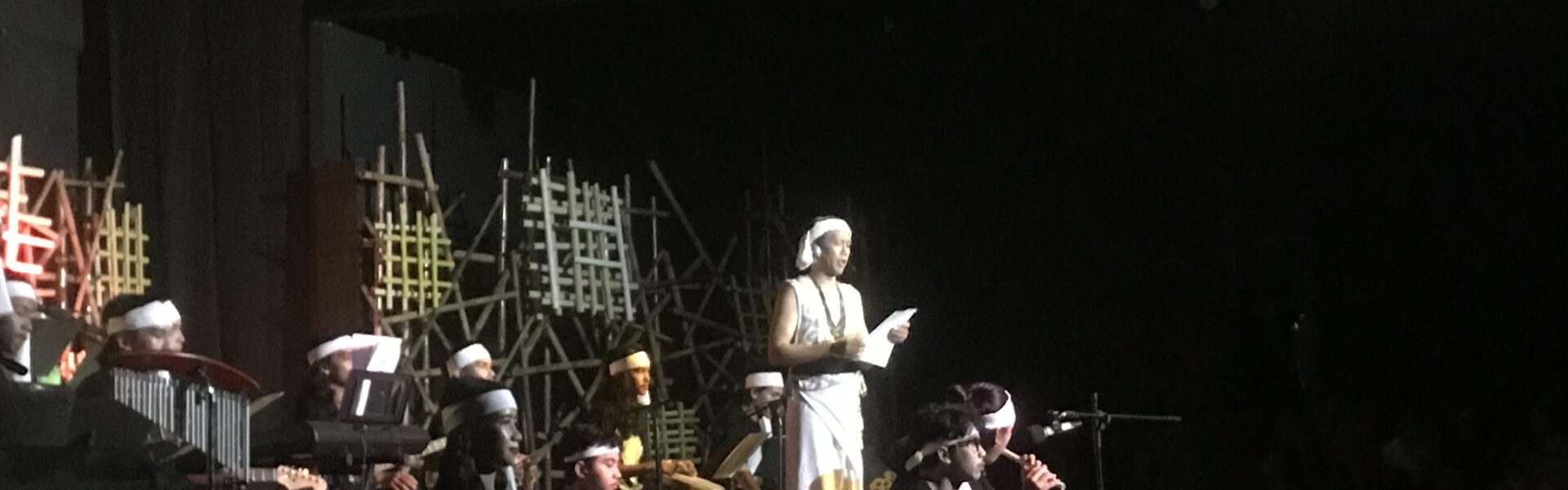 Selain itu, hal yang sangat membuat saya takjub adalah bentuk set hiasan pagar-pagar bambu yang dibentuk dengan unik, di bagian dalam dibuat sedikit berantakan dan di luarnya dibuat dengan bentuk menyerupai kotak-kotak yang saya masih tidak tahu apa artinya tapi itu adalah set hiasan yang sangat unik dan itu membuat saya berspekulasi kalau bentuk itu pasti dibuat dengan makna. Tentu, tetap berhubungan dengan musik yang dimainkan.